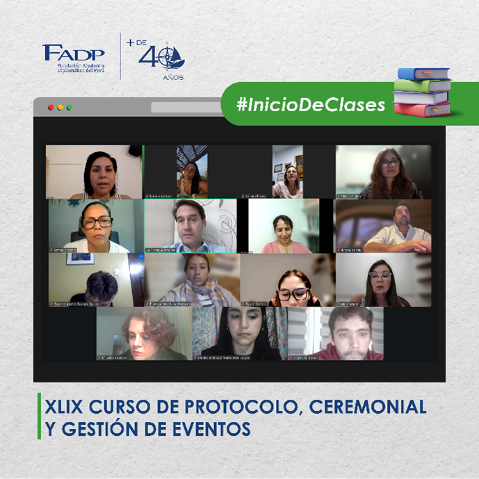 La Fundación Academia Diplomática del Perú (FADP) dio inicio, el lunes 16 de febrero, al XLIX Curso de Protocolo, Ceremonial y Gestión de Eventos, marcando el comienzo de una nueva edición orientada al fortalecimiento de competencias profesionales en la organización de actos oficiales, institucionales y corporativos.